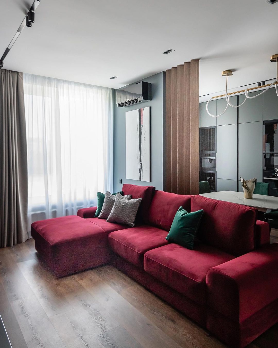 Из этой планировочной особенности родилось и единое текстильное решение в цветах и оттенках неба в проекте #миссштора_облака Да-да, вы правильно поняли, и в гостиной, и в ...