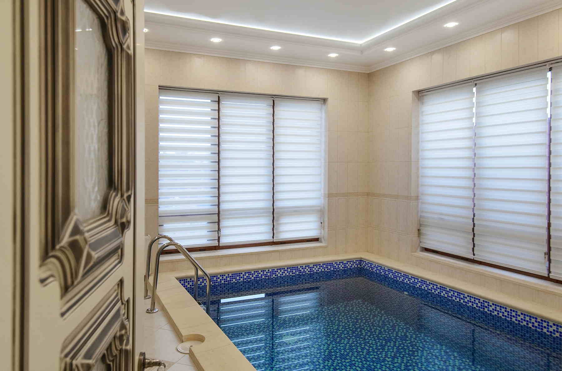 Чаще всего в нашем профиле появляются фотографии спален, гостиных, кухонь, но мы оформляем и другие пространства, например, ванные комнаты и бассейны.⠀ Какие же шторы подходят для таких помещений? Практичные, лёгкие ...