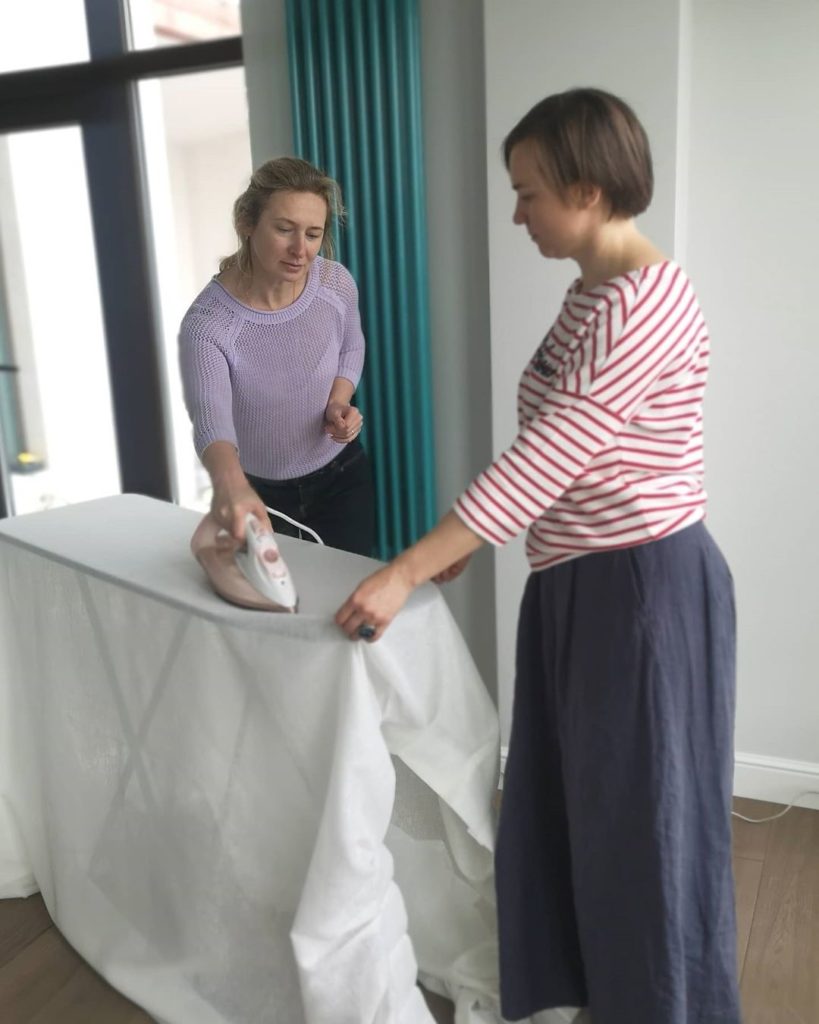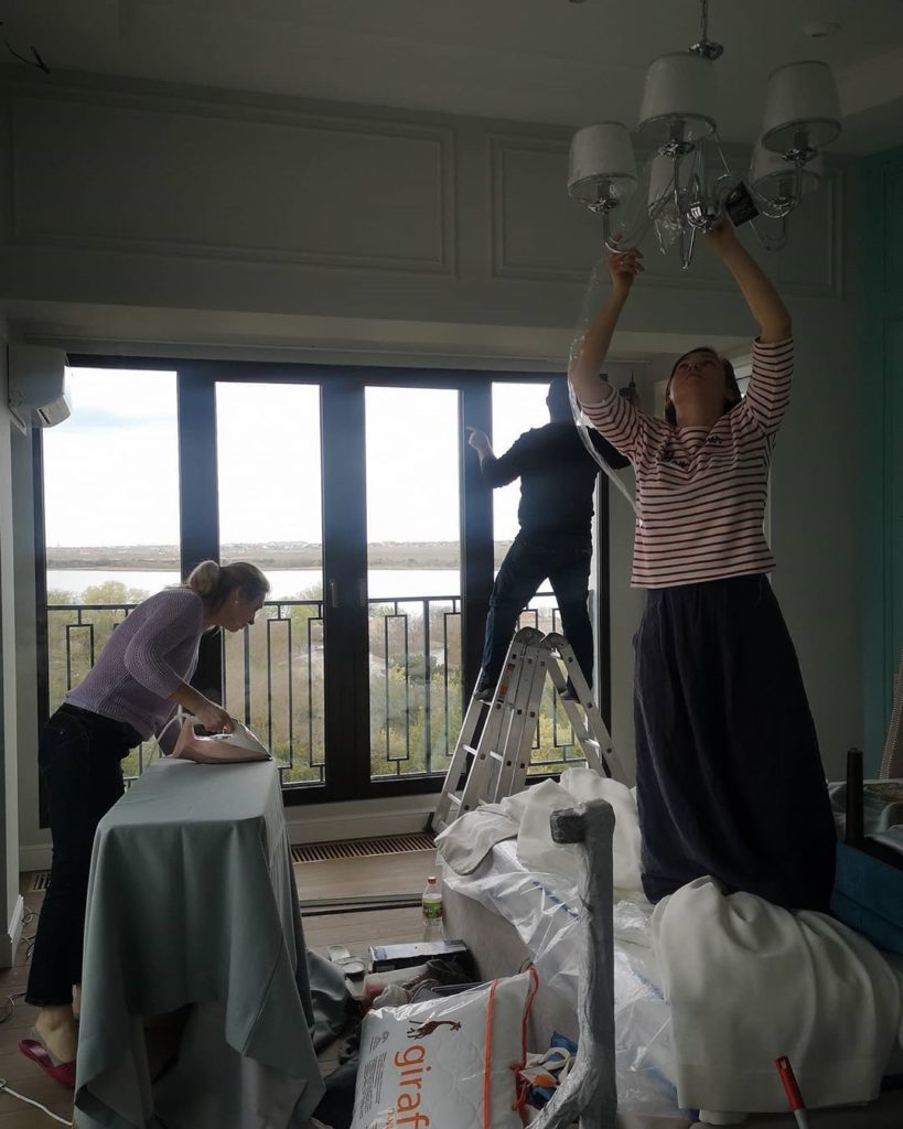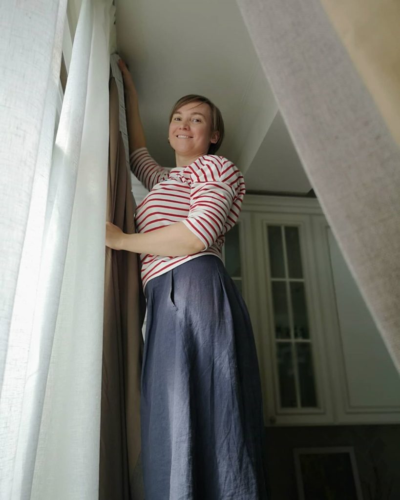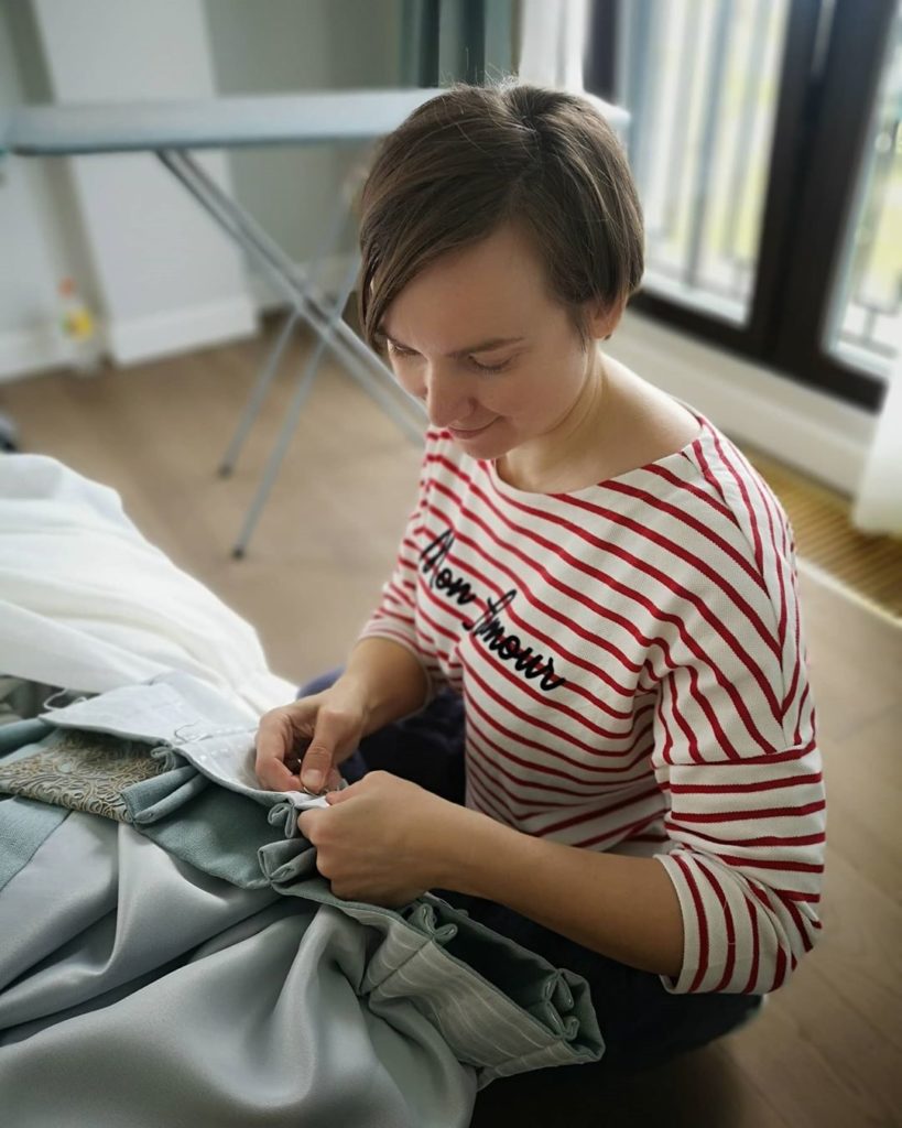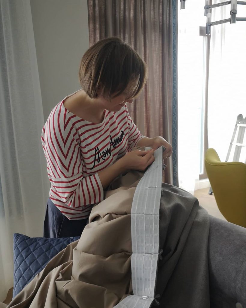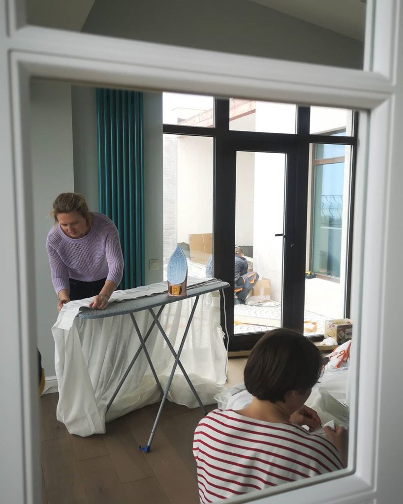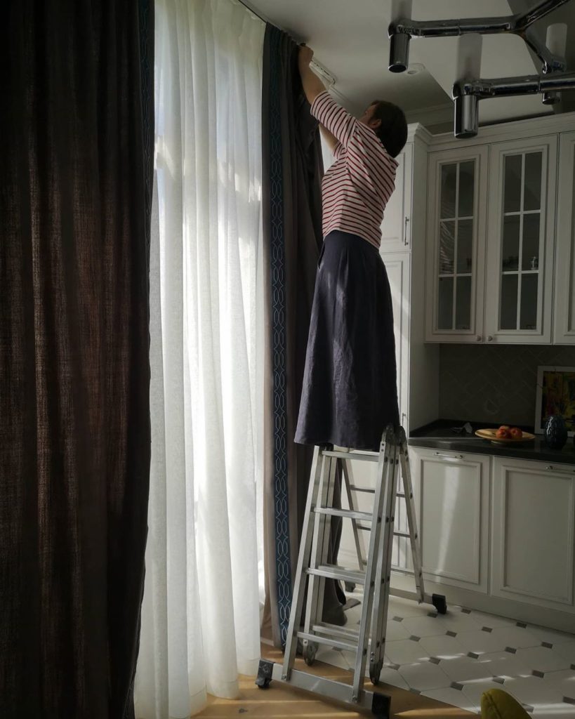 Мы работаем на результат, а процесс делаем бережным и заботливым для наших заказчиков. Сегодняшние кадры — почти как фото через замочную скважину — устанавливаем карнизы, утюжим шторы, надеваем крючки, поправляем складочки.