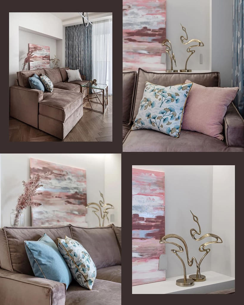 И неотъемлемое дополнение текстильной композиции, это подушки на диваны, добавляющие в интерьер контраста и жизни.