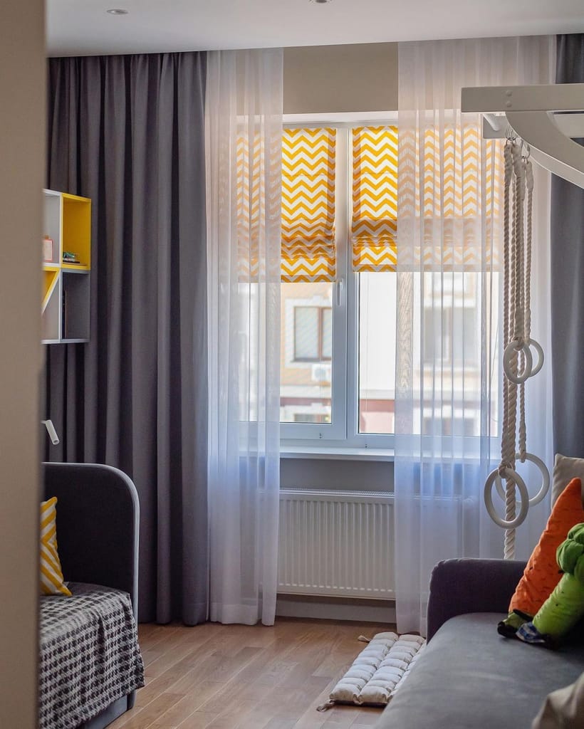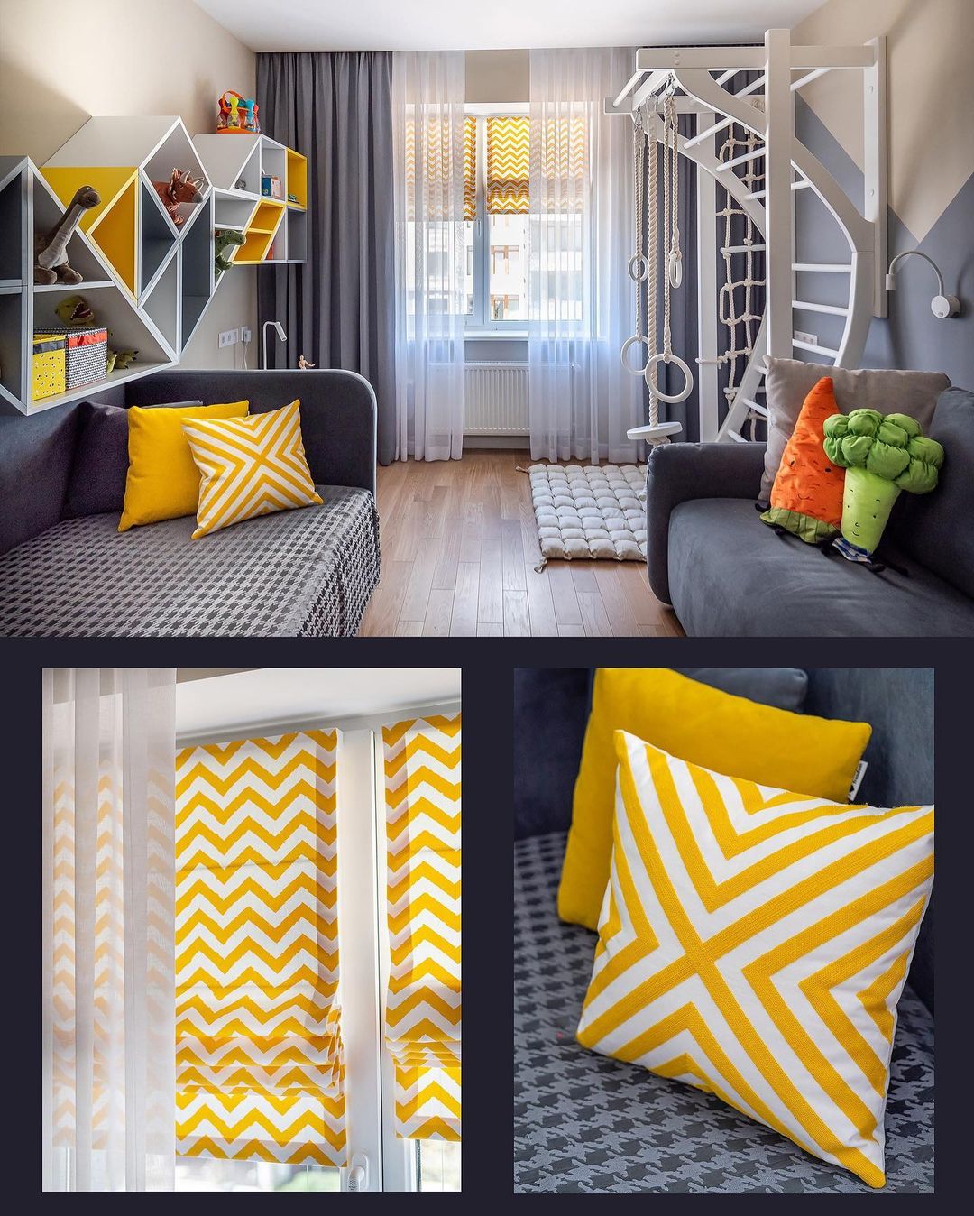 — Римские шторы из плотного хлопка с геометрическим орнаментом