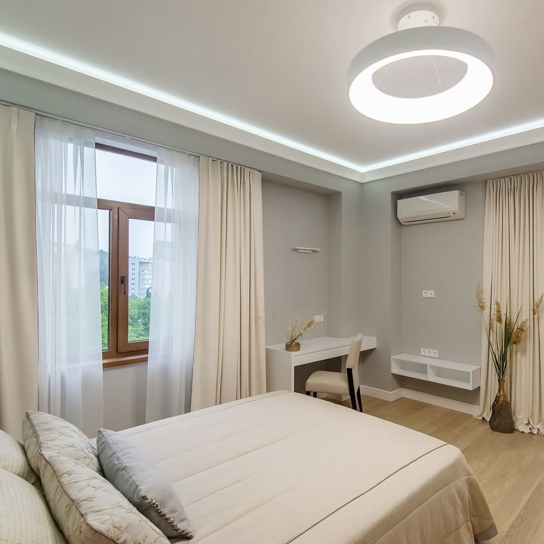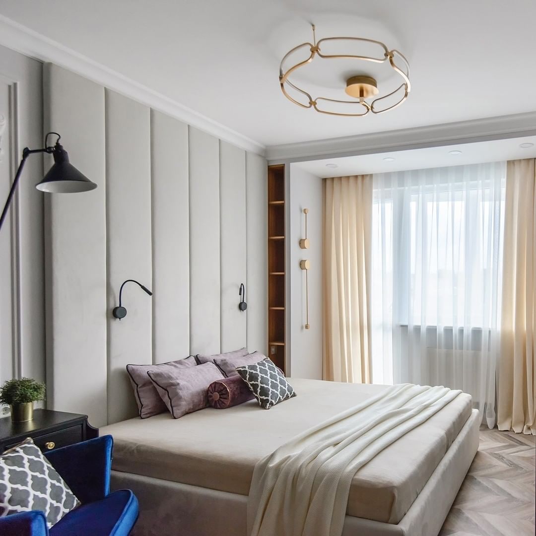 * несколько сценариев искусственного освещения, чтобы кроме люстры были торшеры/ бра;