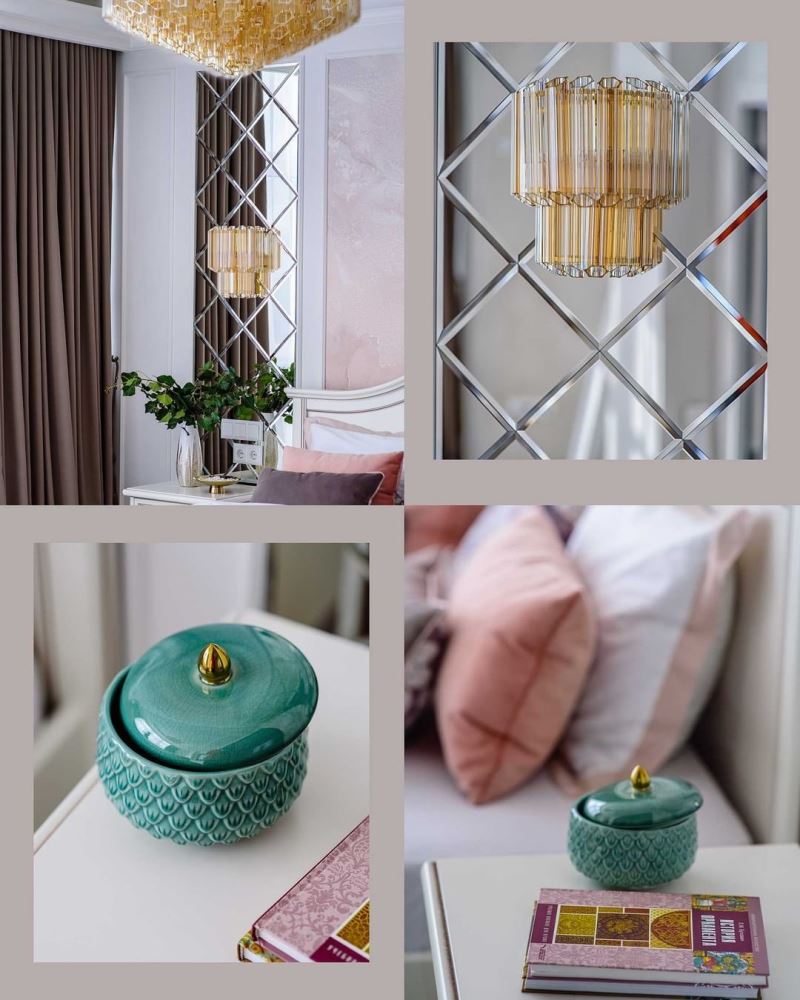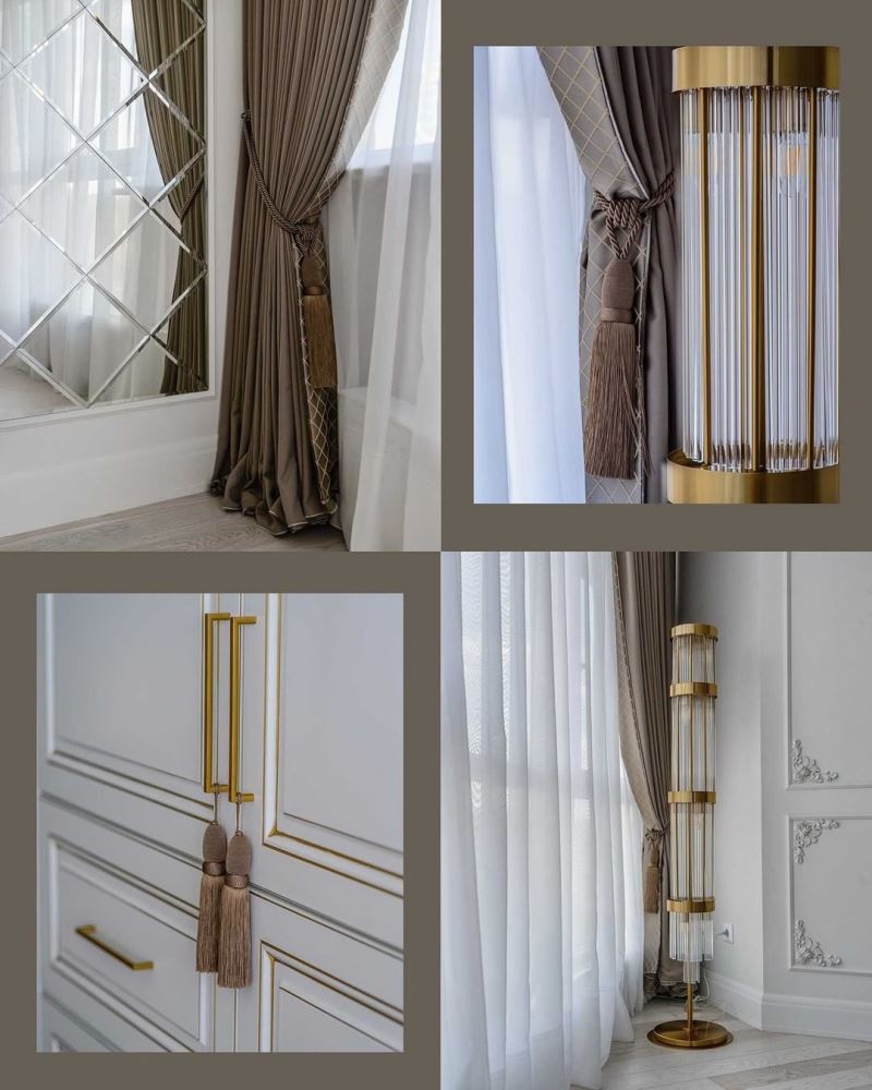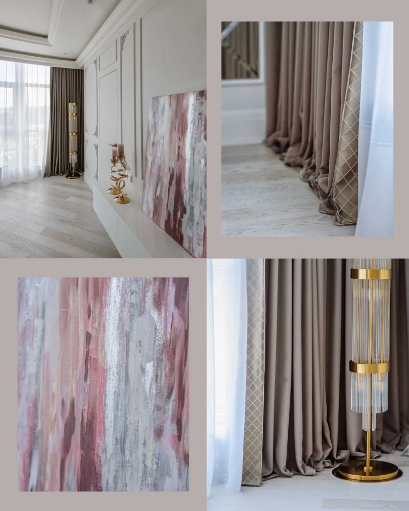 - одна и та же ткань для нескольких помещений в доме. В проекте «Хрустальные грани» матовая ткань с благородным саржевым плетением в красивом и сложном оттенке.