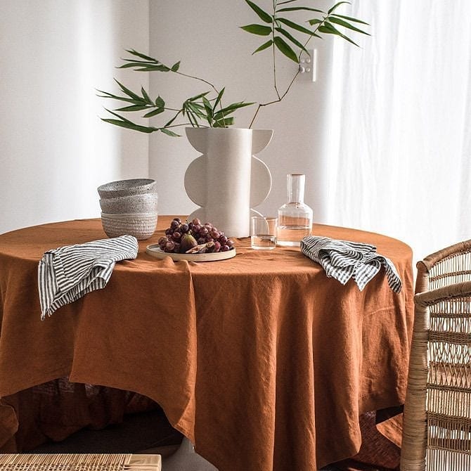 Льняная скатерть – это больше, чем элемент декора. С нею обстановка в доме теплее, а еда вкуснее. Ею хочется любоваться, к ней хочется прикасаться и наслаждаться.