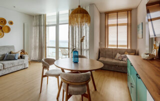 Эта квартира в Гурзуфе — место для семейного отдыха на побережье моря. Владельцы хотели ощущать атмосферу непринужденности, наслаждаясь природными оттенками и фактурами в интерьере.
