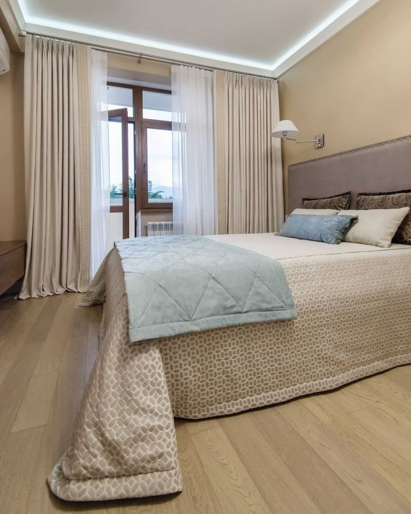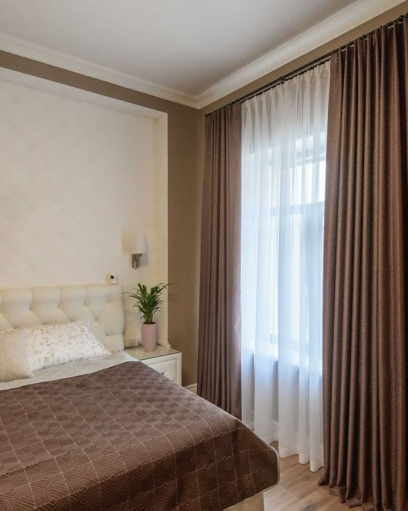 - Покрывало из той же ткани, что и шторы. Если это не часть масштабной задумки в рамках интерьерного стиля, то выглядит устаревшим, примитивным. Примерно, как сумка точно в цвет обуви. Да, лет тридцать назад такой комплект был большой удачей, но сейчас все изменилось. Мы следим за трендами и рассказываем вам о них.