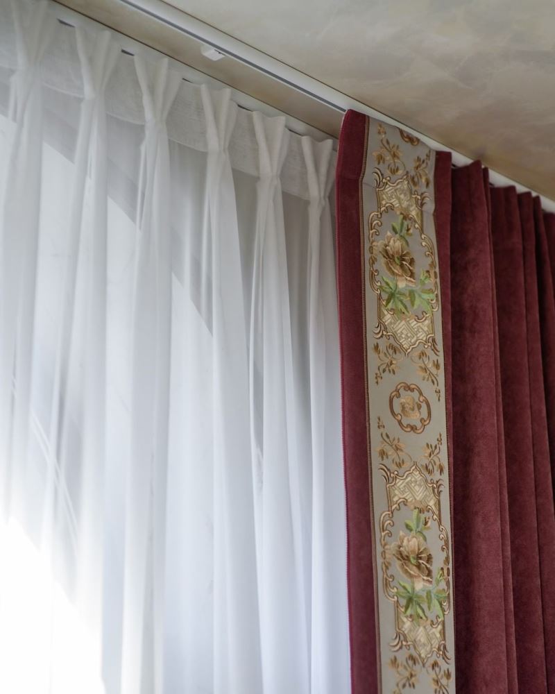 В проекте «Малахитовая шкатулка» мы демонтировали устаревшие стеновые карнизы и установили голландский алюминиевый профиль. Он обеспечивает безупречное скольжение штор и максимальную высоту.