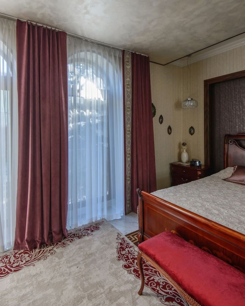 Прямые полотна штор слегка касаются пола. Кажется, мягкость и расслабленность ощущаются даже на фото. Подкладка позволяет лучше укрыться от солнечного света по утрам.
