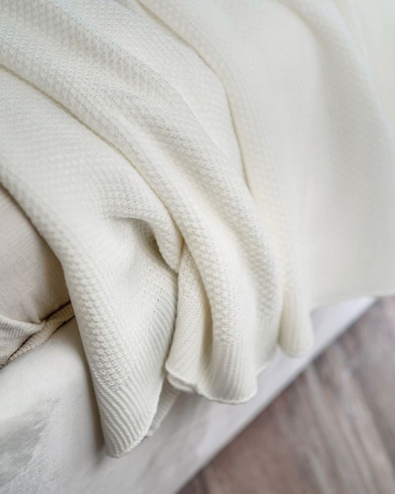 В спальне French 75 по проекту дизайнера интерьера Татьяны Петровой кровать застелена пледом в оттенке топленого молока.