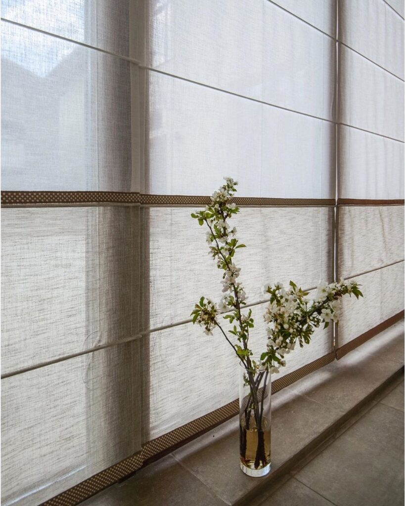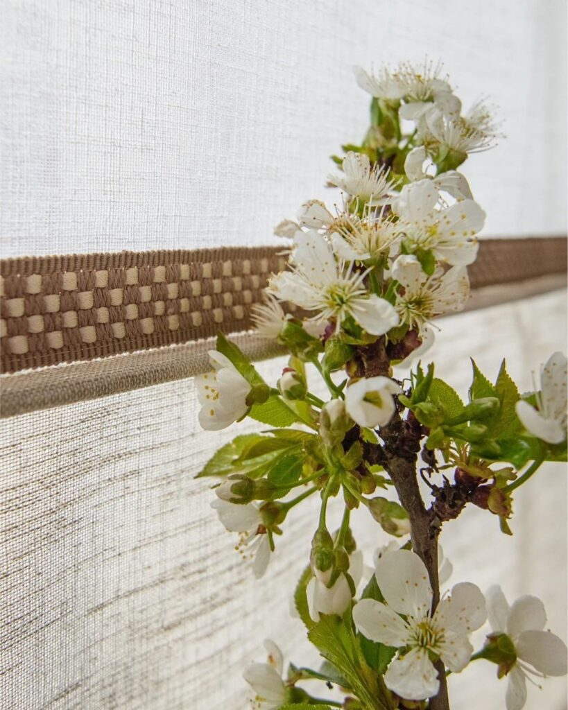 И вот, готово — полупрозрачная ткань, четкий ритм и декоративная лента по низу шторы.