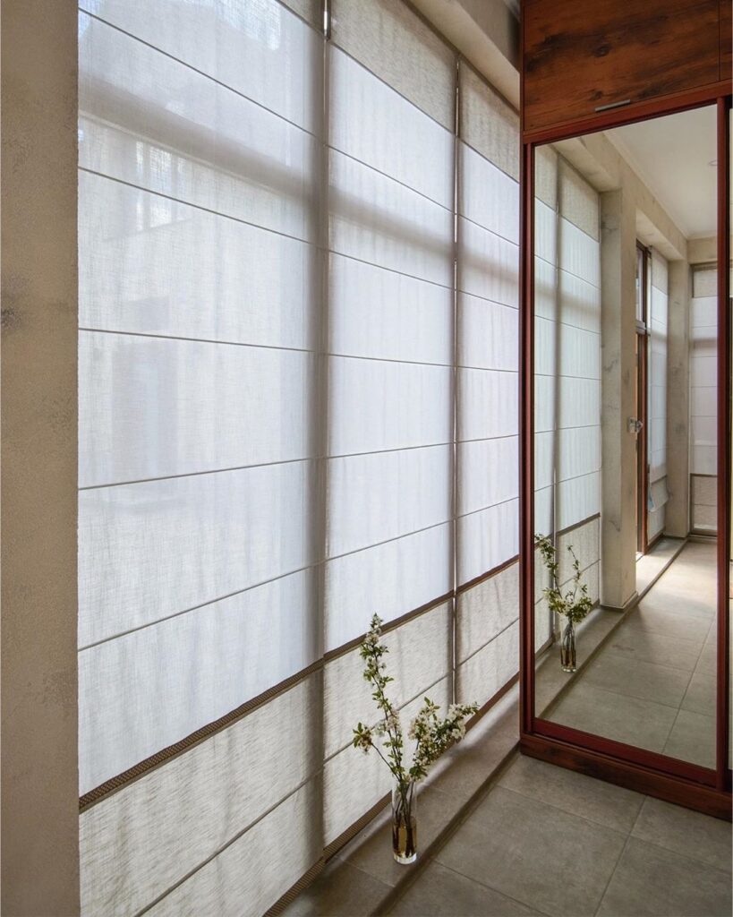 Почему мы в Мисс Штора решили, что римские шторы — отличное решение для этой прихожей в загородном доме? Конечно, наши выводы опирались на возможности комнаты и пожелания заказчицы.