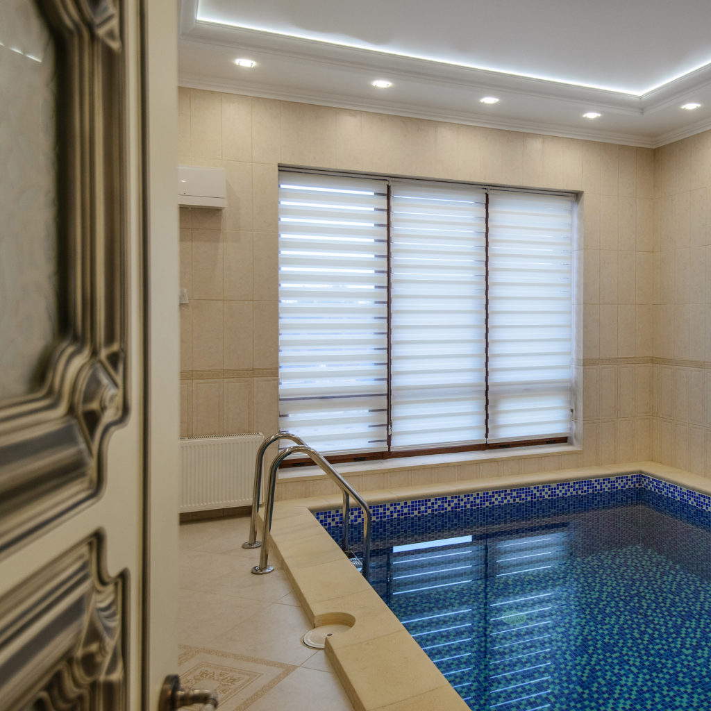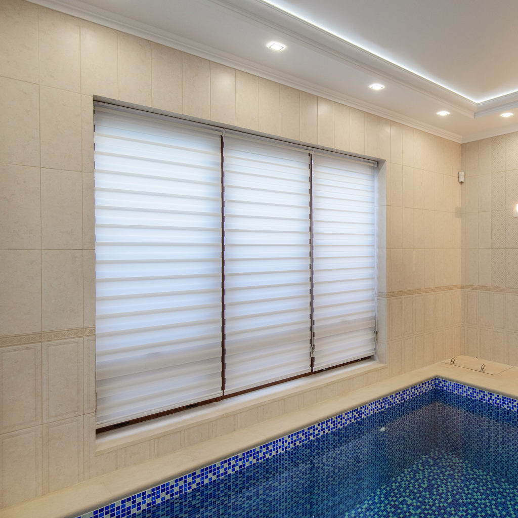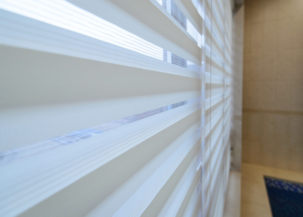 Мы остановились на варианте рулонных штор типа «день-ночь» из лёгкого полупрозрачного текстиля, который обладает всеми вышеперечисленными свойствами.