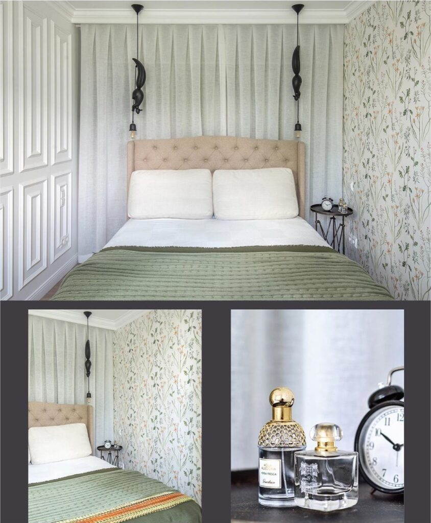Уютная компактная спальня, казалось бы, не вместит в себя ни гардеробную комнату, ни полноценный шкаф. Но профессиональный дизайнер найдет выход, даже если нет огромных площадей и космических бюджетов.