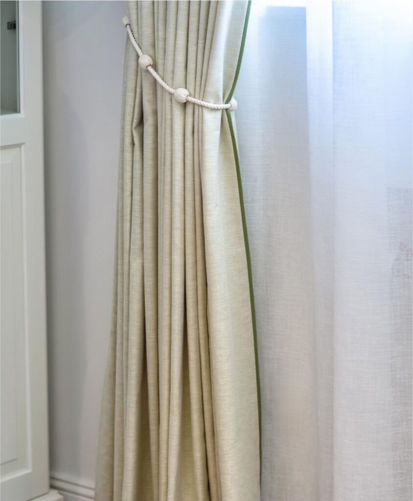 Нам осталось только подобрать ткань нужной плотности и алюминиевый карниз с идеальным движением бегунков. Для того, чтобы в любом положении штора выглядела аккуратно, мы сделали по верху встречную складку, а по низу — широкую подгибку.