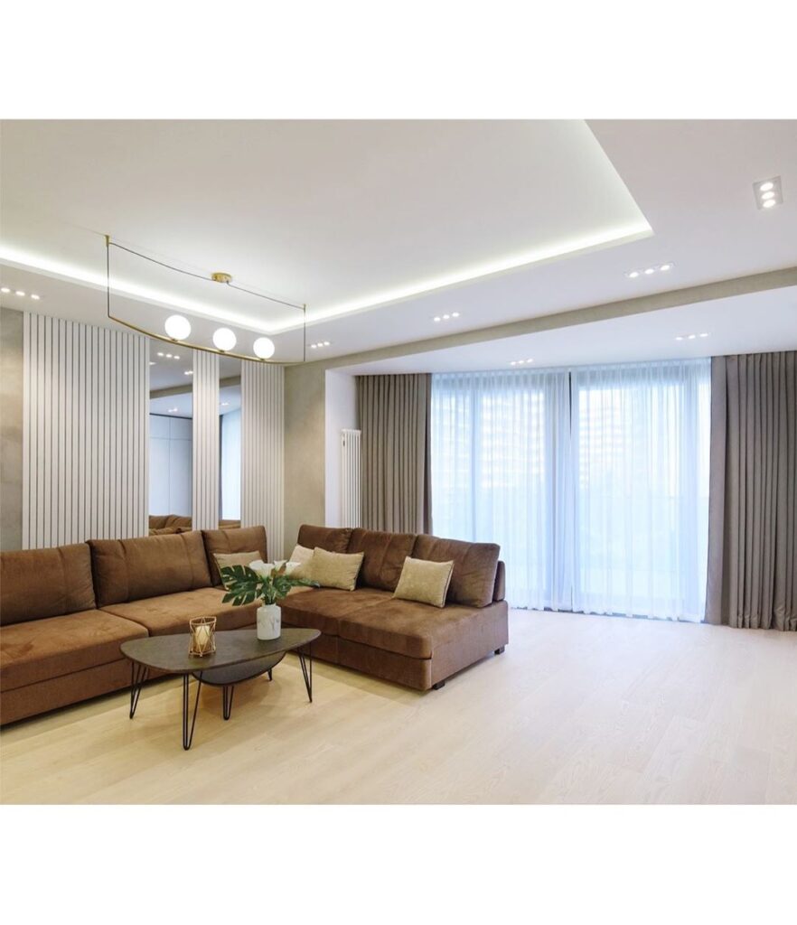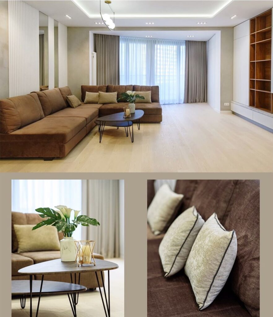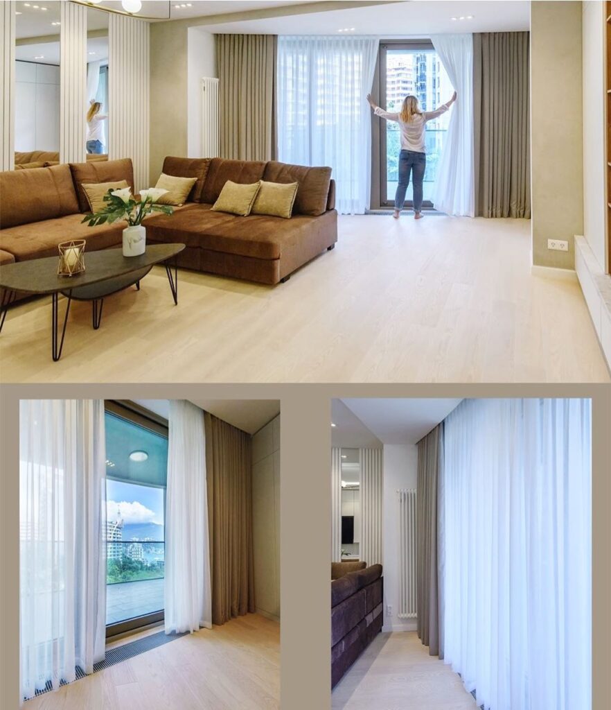 На фото — почти (на самом деле нет) универсальные бежевые шторы для стильной современной квартиры по проекту Надежды Гринченко @millionrooms.